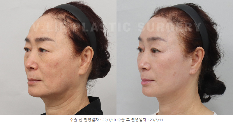 사진으로 확인할 수 있듯이 목까지 처짐이 진행 되셔서 안면목거상술이 필요하셨고