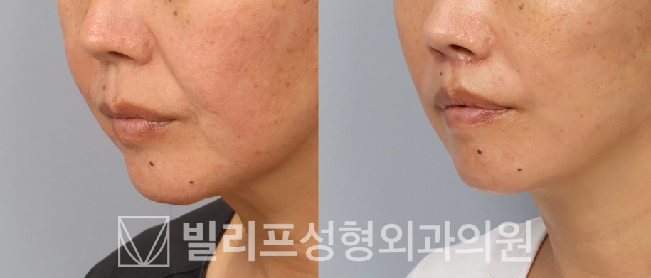 그 결과 인중 길이 축소뿐 아니라 주름 개선과 얼굴의 입체감까지 한 번에 개선되어 동안 효과가 더욱 뚜렷해집니다.